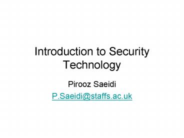 Introduction to Security Technology - PowerPoint PPT Presentation