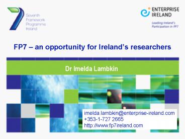 FP7 an opportunity for Irelands researchers PowerPoint PPT Presentation