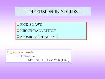 Diffusion in Solids P.G. Shewmon McGraw-Hill,