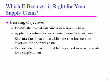 1Which E-Business is Right for Your Supply Chain?