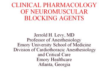 Title: CLINICAL PHARMACOLOGY OF NEUROMUSCULAR BLOCKING AGENTS