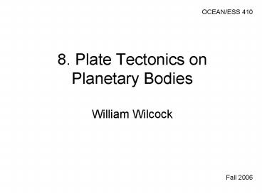 8' Plate Tectonics on Planetary Bodies William Wilcock PowerPoint PPT Presentation