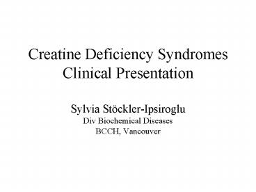 Title: Creatine Deficiency Syndromes Clinical Presentation