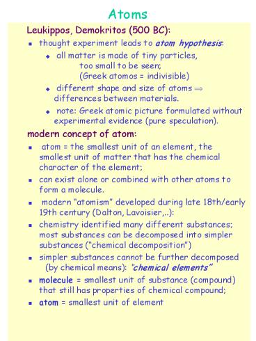 • note Greek atomic picture formulated without