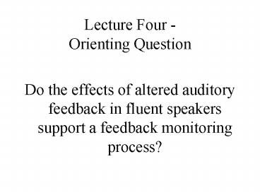 Title: Lecture Four Orienting Question