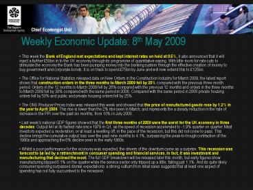 <Notice: Removed> Weekly Economic Update: 8th May 2009 PowerPoint PPT Presentation