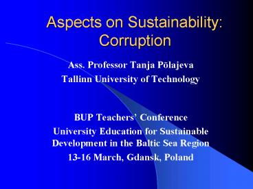 Title: Aspects on Sustainability: Corruption