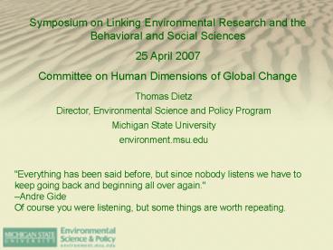 1Symposium on Linking Environmental Research and