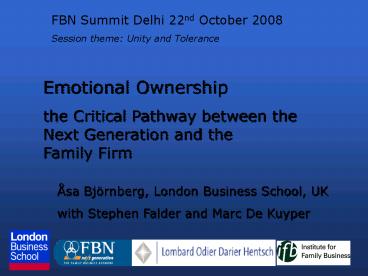 1FBN Summit Delhi 22nd October 2008 Session theme