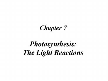 Title: Chapter 7 Photosynthesis: The Light Reactions