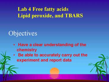 Lab 4 Free fatty acids Lipid peroxide, and TBARS PowerPoint PPT Presentation