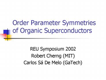 Order Parameter Symmetries of Organic Superconductors PowerPoint PPT Presentation