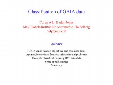 <Notice: Removed> Classification of GAIA data PowerPoint PPT Presentation