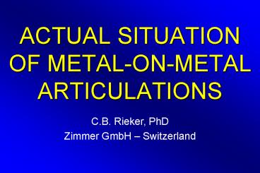 Title: ACTUAL SITUATION OF METALONMETAL ARTICULATIONS