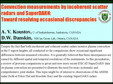 Title: Convection measurements by incoherent scatter radars and SuperDARN: