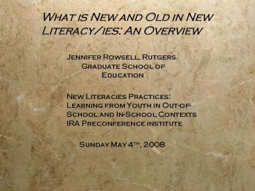 Title: What is New and Old in New Literacy/ies: An Overview