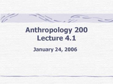 Anthropology 200 Lecture 4.1 PowerPoint PPT Presentation