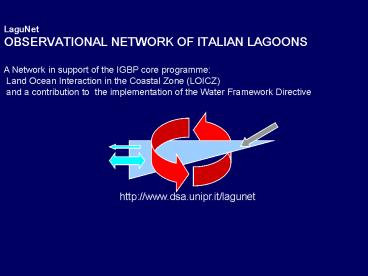 communities in the Italian Coastal lagoons - February 2005 LaguNet is included as a regional