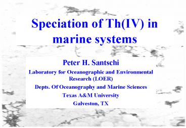 Title: Speciation of Th(IV) in marine systems