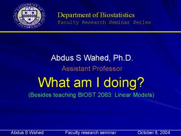 Title: Department of Biostatistics Faculty Research Seminar Series