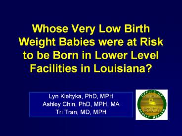 <Notice: Removed> Whose Very Low Birth Weight Babies were at Risk to be Born in Lower Level Facilities in Louisiana? PowerPoint PPT Presentation