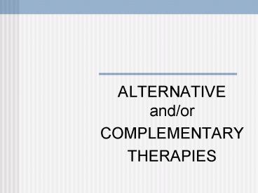 - Alternative Therapies are used instead of