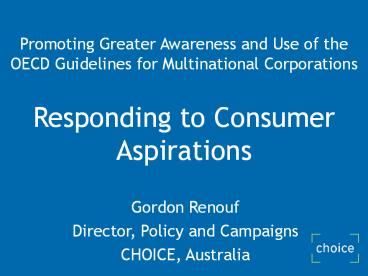 To increase the impact of the Guidelines ... Better correspond to consumer aspirations ... Devinney T, Auger, P., Louviere, J. and Burke, P. 2008. ... – PowerPoint PPT presentation