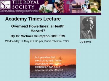 - Wednesday 12 May at 7.30 pm, Burke Theatre, TCD