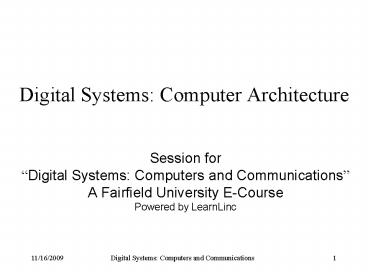 Digital Systems: Computer Architecture PowerPoint PPT Presentation