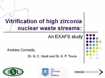 vitrified with a waste loading of at least 15 wt - Zr becomes part of the silicate network