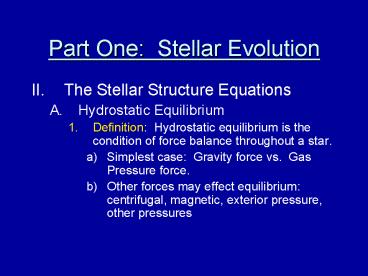 condition of force balance throughout a star. - Simplest case Gravity force vs. Gas Pressure