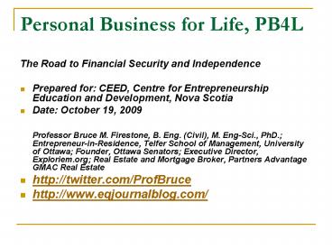 Title: Personal Business for Life, PB4L