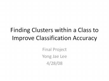 Finding Clusters within a Class to Improve Classification Accuracy PowerPoint PPT Presentation