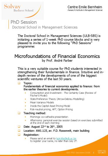 PhD Session Doctoral School in Management Sciences PowerPoint PPT Presentation