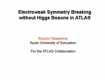 Title: Electroweak Symmetry Breaking without Higgs Bosons in ATLAS