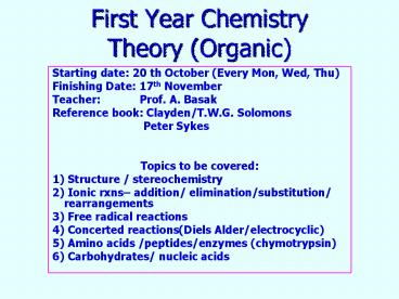 Title: First Year Chemistry Theory (Organic)