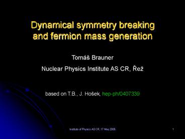 1Dynamical symmetry breaking and fermion mass