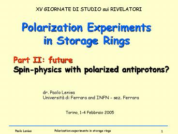 dr. Paolo Lenisa Università di Ferrara and INFN -