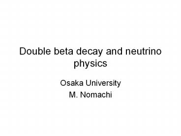 Title: Double beta decay and neutrino physics