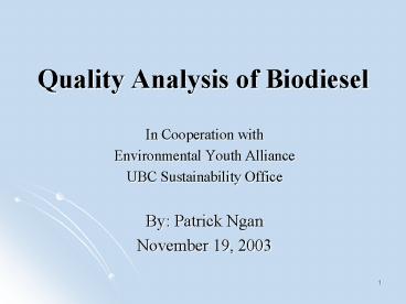 Quality Analysis of Biodiesel PowerPoint PPT Presentation