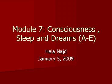 Module 7: Consciousness , Sleep and Dreams AE PowerPoint PPT Presentation