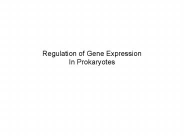Title: Regulation of Gene Expression In Prokaryotes