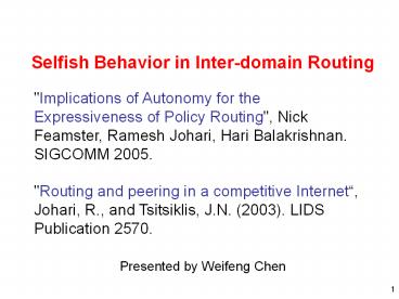 1Selfish Behavior in Inter-domain Routing