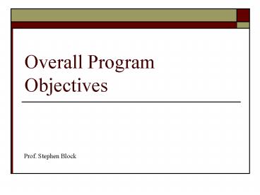 <Notice: Removed> Overall Program Objectives PowerPoint PPT Presentation