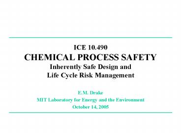 1ICE 10.490CHEMICAL PROCESS SAFETYInherently