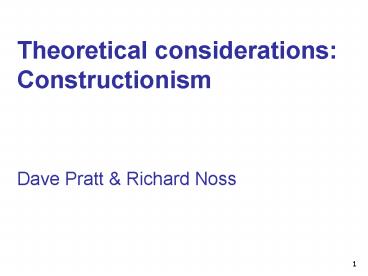 Title: Theoretical considerations: Constructionism Dave Pratt