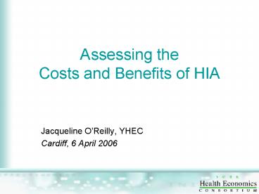 Assessing the Costs and Benefits of HIA PowerPoint PPT Presentation