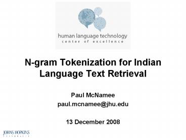 <Notice: Removed> N-gram Tokenization for Indian Language Text Retrieval PowerPoint PPT Presentation