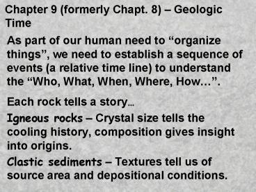 Title: Chapter 9 formerly Chapt' 8 Geologic Time
