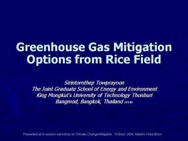 Title: Greenhouse Gas Mitigation Options from Rice Field